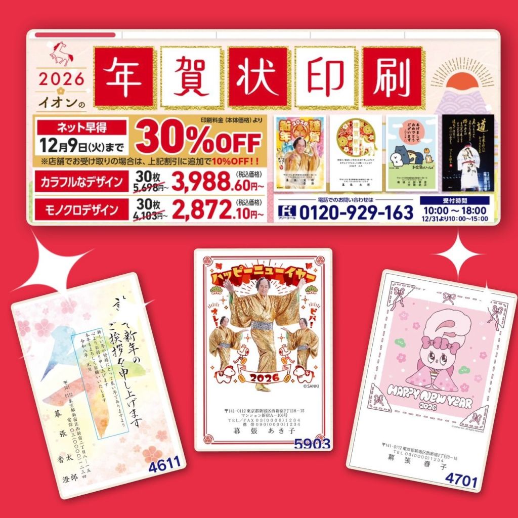 またインターネット限定で12/20(土)まで「宛名印刷」が無料です♪