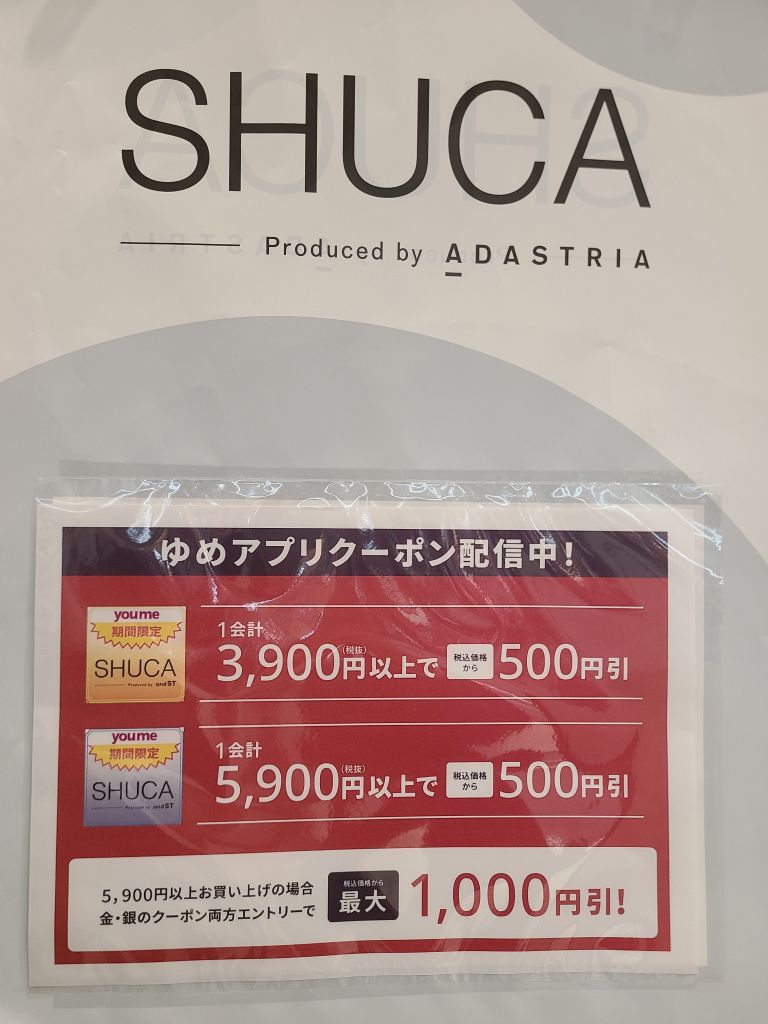 ゆめアプリからエントリーのうえ、ぜひ2階婦人服SHUCAコーナーへお立ち寄り、ご利用ください。