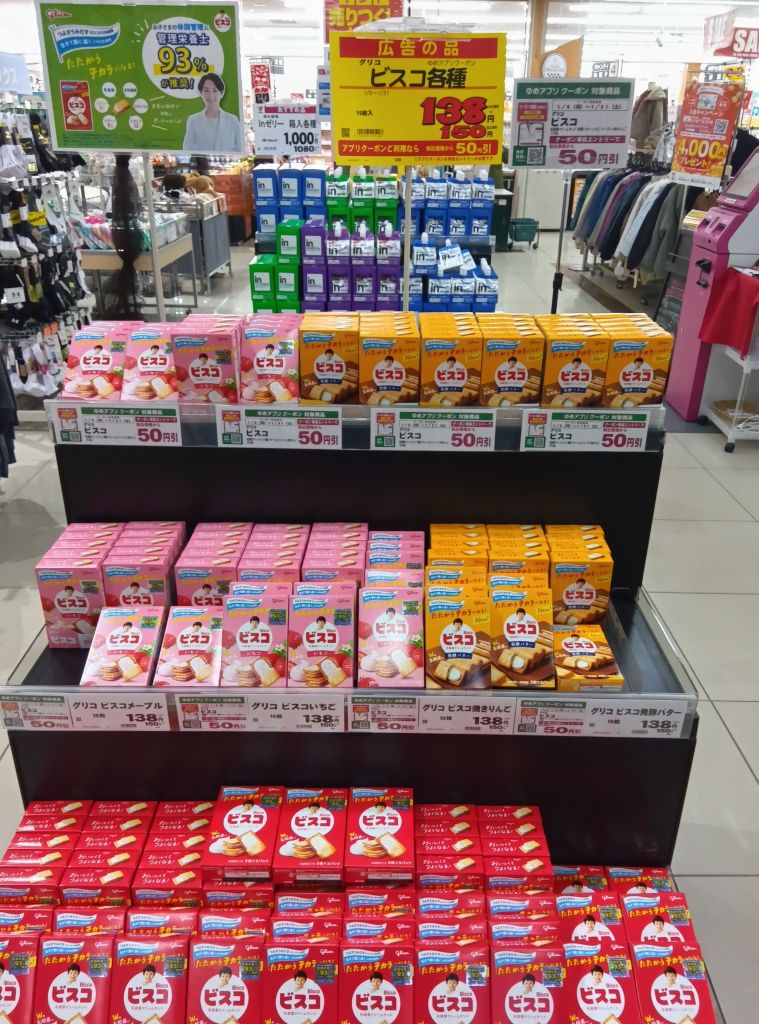 ユアーズ白木店店長の割瀬です 今月はビスコがお買い得です 栄養価の高いビスコ、アプリクーポンエントリーで更にお買い得です 今月はユアーズ白木店でビスコをお買い求めください!