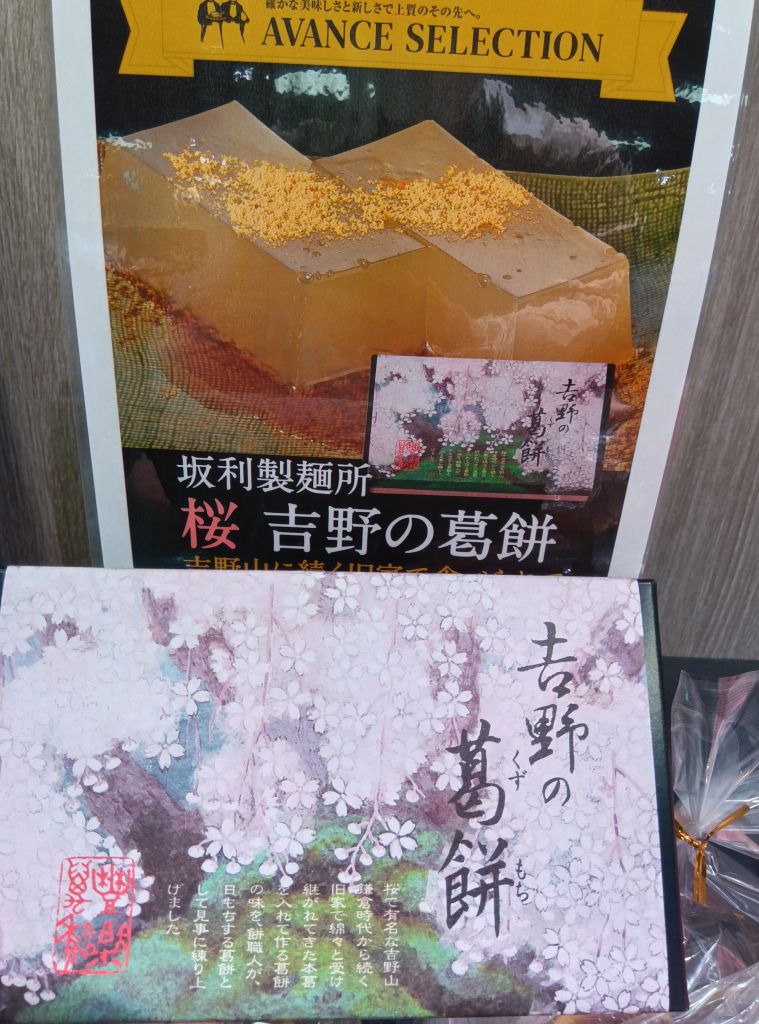 続いてコチラは華やかな桜の絵が描かれた葛餅です。ほんのり薄茶色に透き通る葛餅は弾力があり、ほのかに甘く優しい味わいです。濃厚ながらもすっきりとした後味の黒みつと、煎りが深く香ばしいきな粉が葛餅の風味を一層引き立てます(^ρ^)*桜味ではございません。