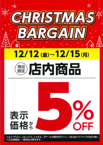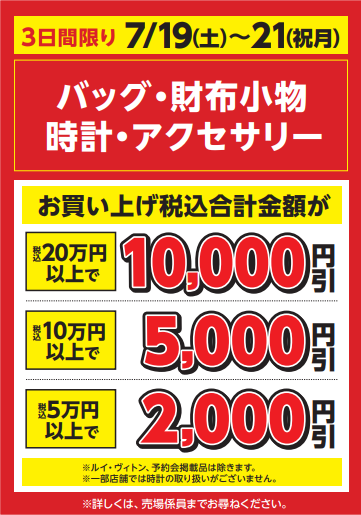 ※ルイヴィトン、ロレックス、シャネル、ゴヤールは除きます(リユース品は全てのブランドが割引対象)