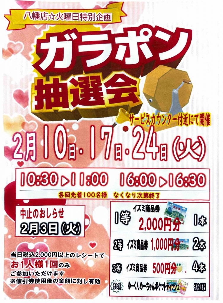 2月度のガラポン抽選会のおしらせです。