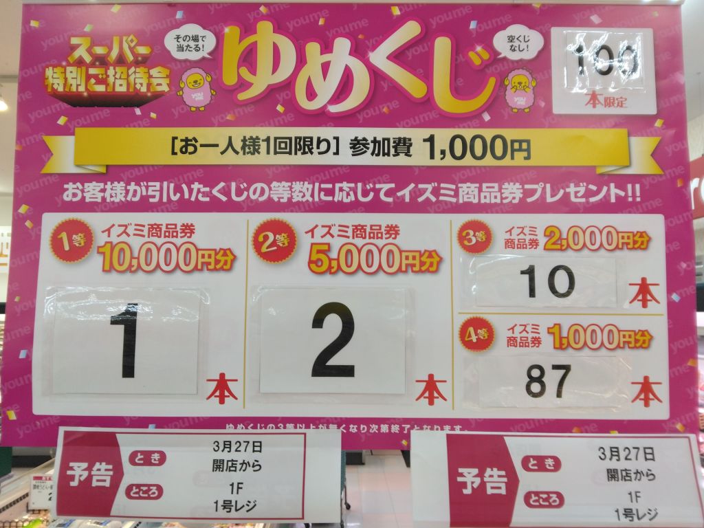 今週末3/27(金)は、恒例のゆめくじを開催致しますよ!!