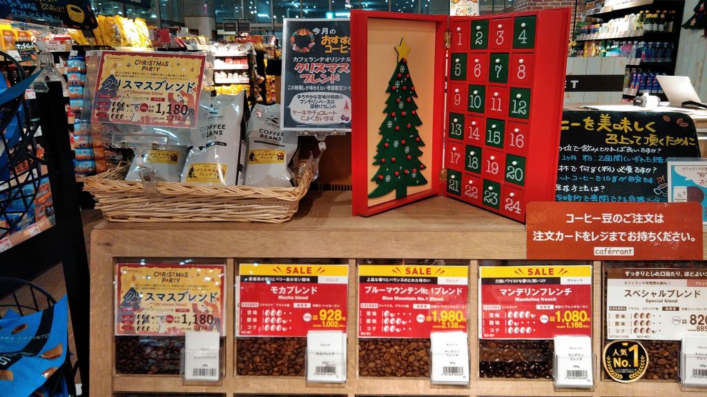 先月に続きのクリスマスブレンド、モカブレンド、ブルーマウンテンNO1ブレンド、マンデリンフレンチとなっております(^-^;