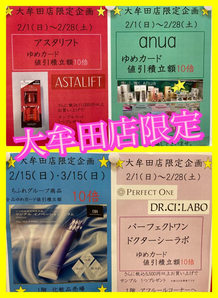 ドクターシーラボ・パーフェクトワン・アスタリフト・アヌアがゆめカード値引積立額10倍!!