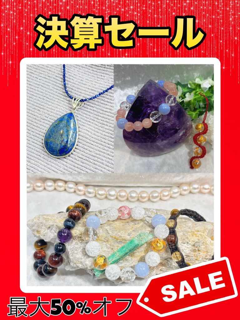 店頭のハンドメイド商品、原石など20%オフから50%オフ(一部対象外の商品もありますが...)商品を丸ごと手に入れるチャンスです!