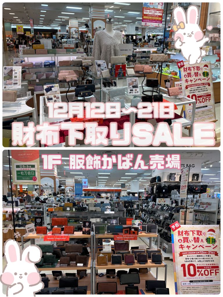 キャンペーン期間中にご不要な財布を1点お引取りで、お買い上げの財布を1点今ついている価格から【レジにて10%OFF】致します!