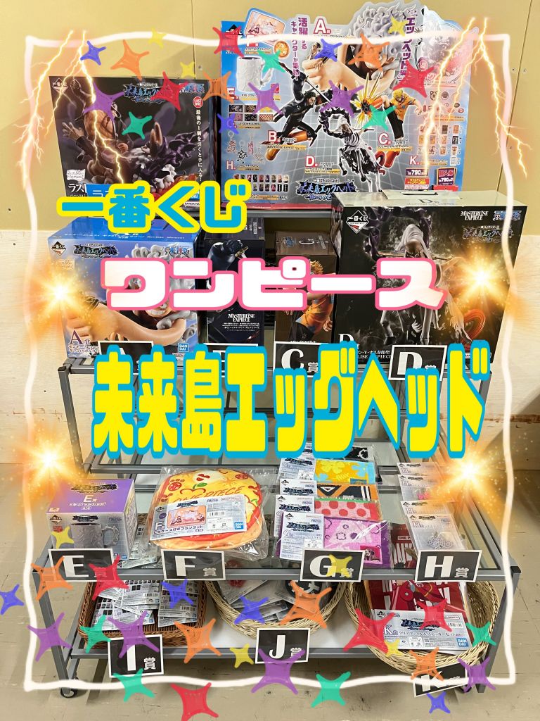 3階薬品コーナーメディカルワン・化粧品コーナージョリーブーケのレジにおきまして、一番くじ『ワンピース未来島エッグヘッド』を1回税込790円にて販売致しております。ぜひお早めにお立ち寄りご利用くださいませ♪