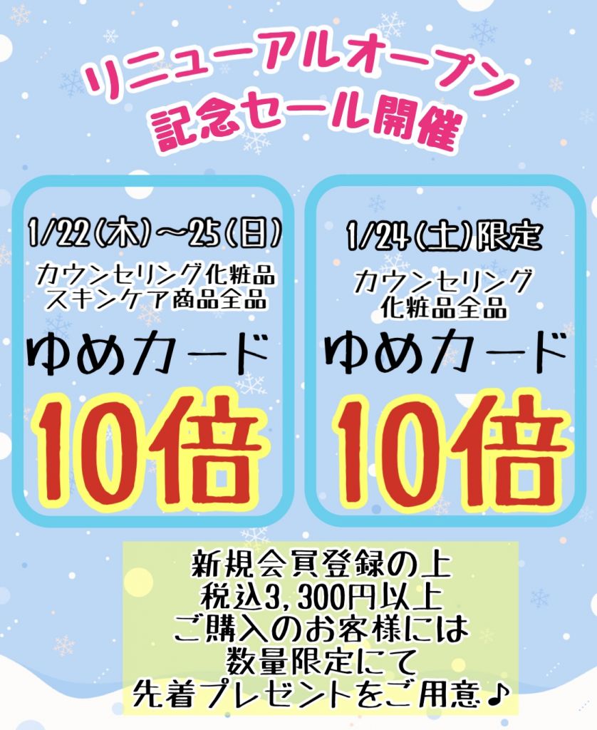 リニューアルオープンを記念いたしまして