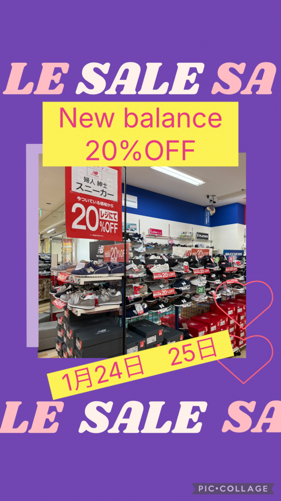 1月24日、25日限定でニューバランス紳士婦人スニーカーが本体価格からの20%OFFと大変お買い得です!