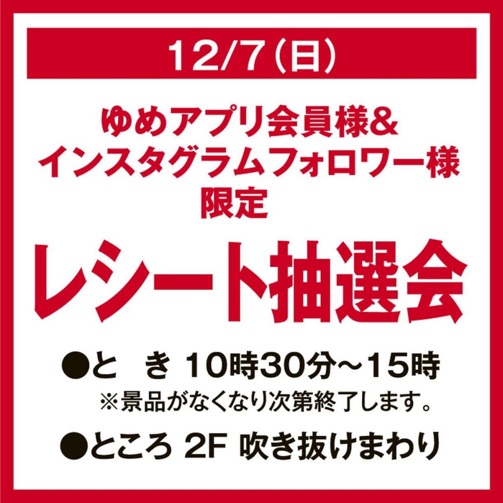 当日の館内での500円(税込)以上のお買い上げレシートとゆめアプリお気に入り店舗にゆめタウン柳井を登録した画面またはゆめタウン柳井インスタグラム公式アカウントをフォローした画面を会場でご提示ください。