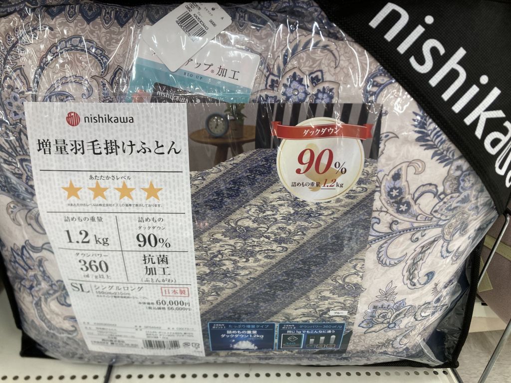 ゆめタウン宇部1階寝具家庭用品コーナーより、お買い得羽毛布団のご案内を申し上げます♪