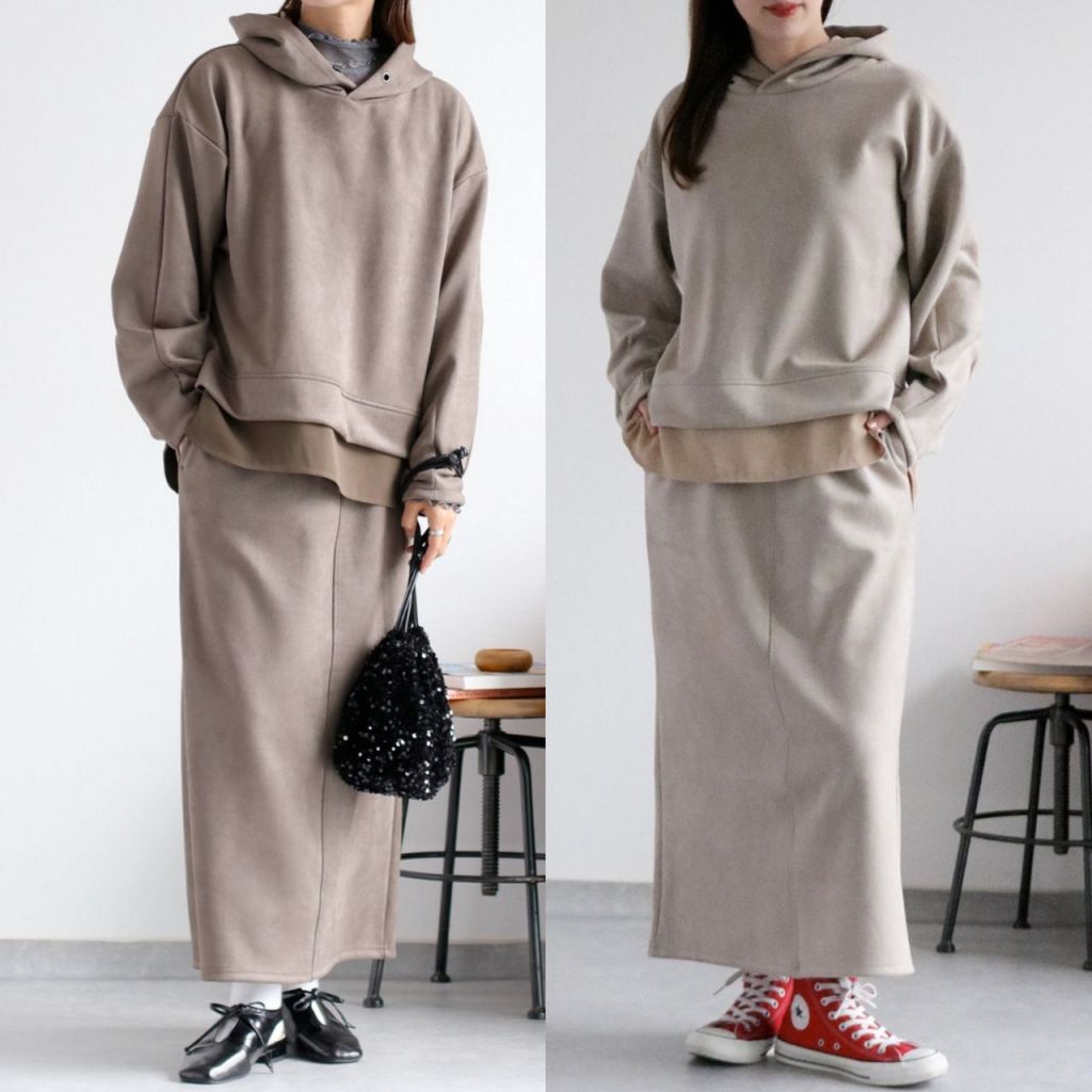 【スエードタッチフーディ&スカート セットアップ】