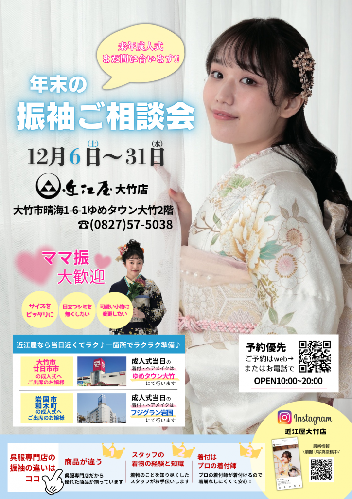 寸法直し・丸洗い・小物(帯〆・帯揚・重ね衿)の変更等お気軽にご相談くださいませ!