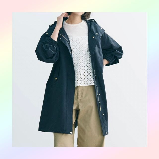 フード口と裾に配したドローストリングをしぼって、シルエットのアレンジを楽しめます♪