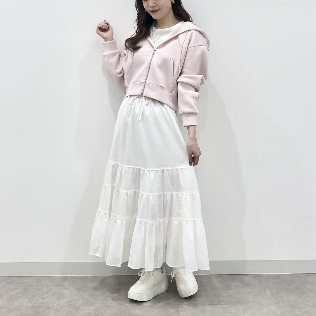 ヒップがすっぽり隠れる丈感で、インナーやボトムを選ばず着用いただけるバランスの良さもポイントです。