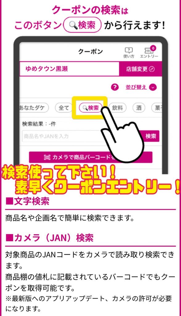 ゆめアプリ クーポン検索ボタン!