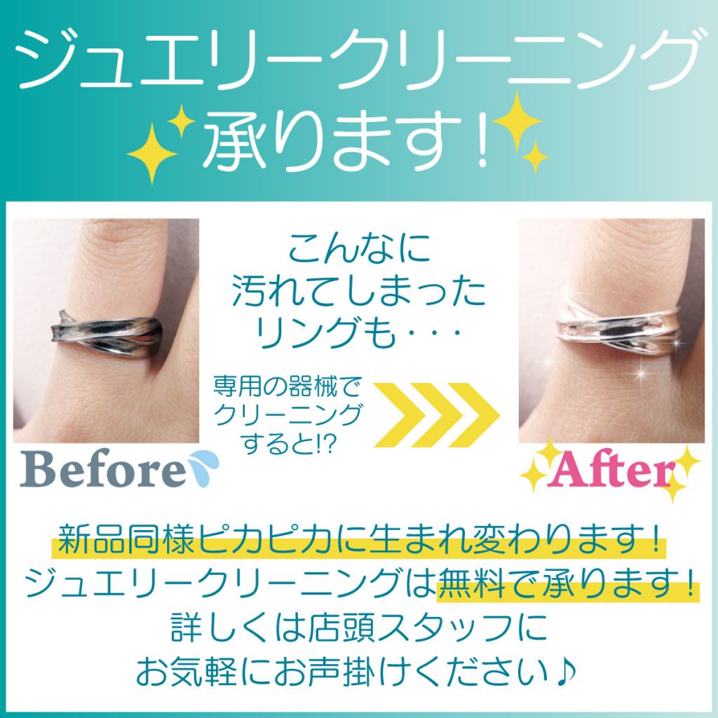ジュエルカフェではジュエリークリーニングを”無料”で承っております。