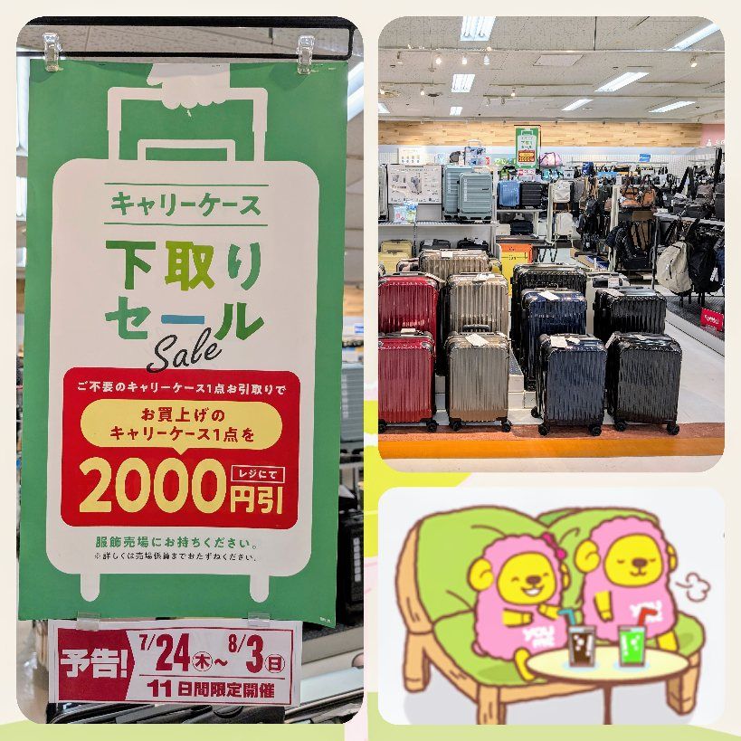 2階キャリーケース売場からご案内いたします。