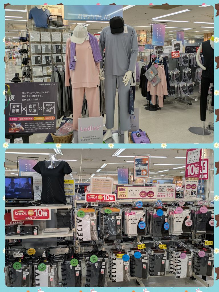 日中も睡眠中も気軽に肌着やパジャマとして着用するだけで体の疲労回復をサポート出来る商品を集めたリカバリーサポートウェアコーナー出来ました。