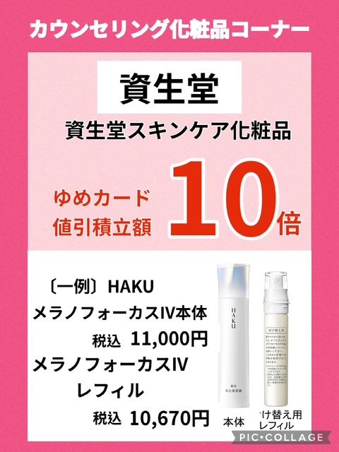 蔵王店 1階カウンセリング化粧品資生堂コーナーからのお知らせです♪