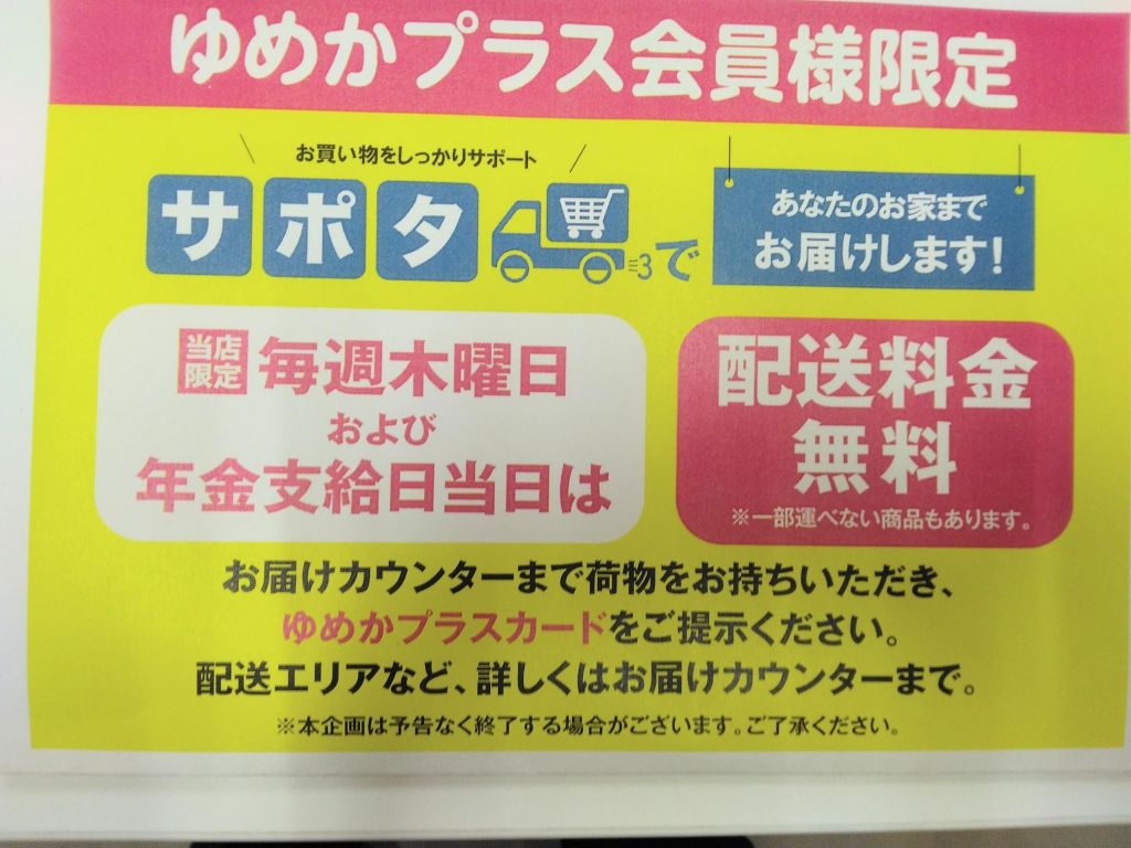 ゆめマート山陽の宅配サービスサポタからのお得なお知らせです。