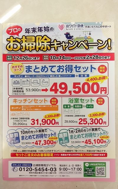 忙しい年末のお掃除は、ぜひホワイト急便すまいとくらしのサポートにおまかせ