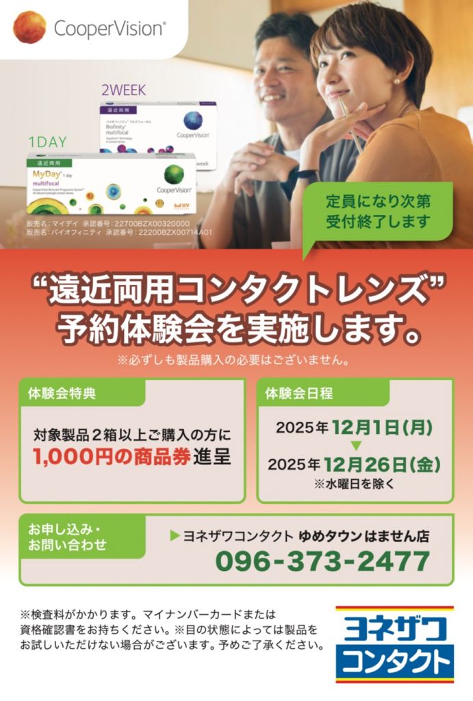 遠近両用コンタクトレンズの予約体験会 を開催中です!