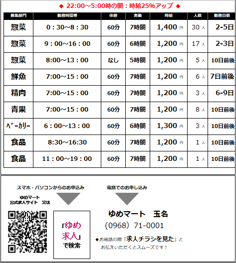 ・そのほかにも部門・時間帯など色々募集してます!