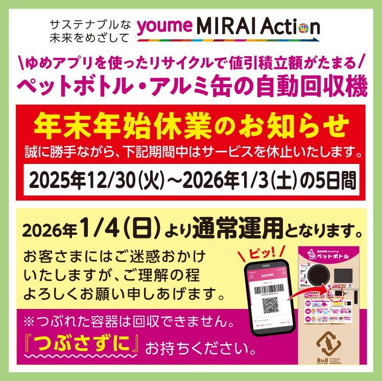 5日間は自動回収機を休止いたします。