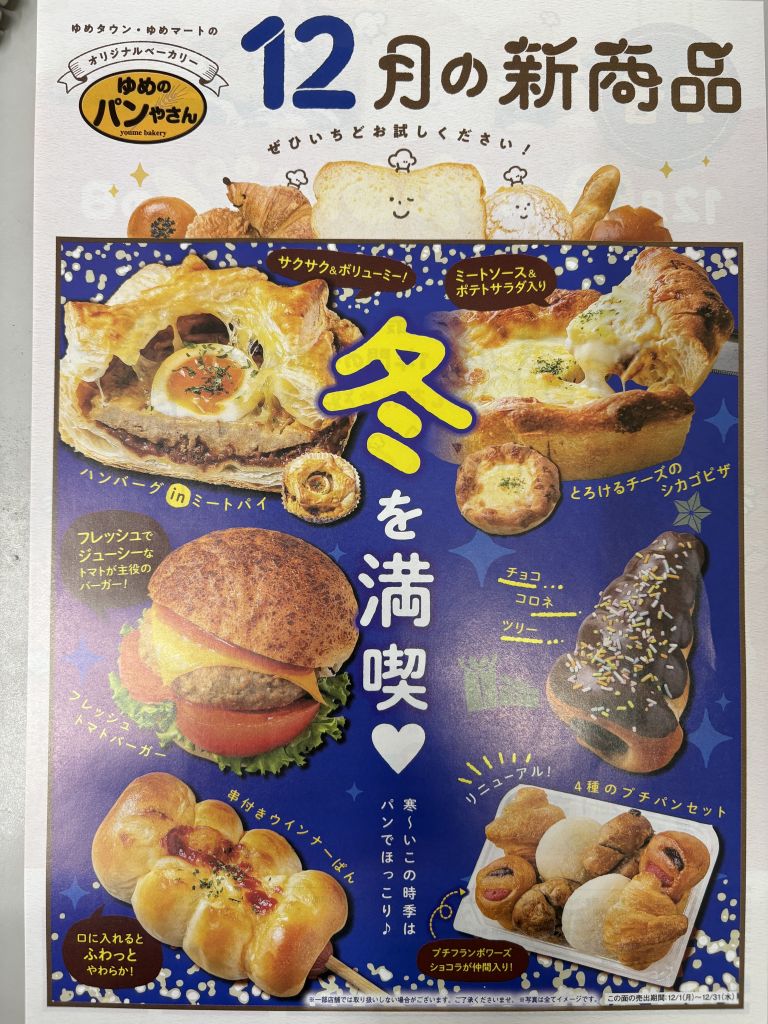 冬仕様の甘味パンまで幅広く取り揃えております。