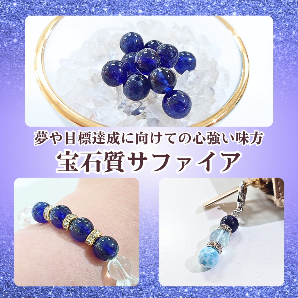 【宝石質サファイア】は、まるで宝石のように透き通る紺色が特徴で、太陽光などに当たるとキレイさが際立つ天然石です。