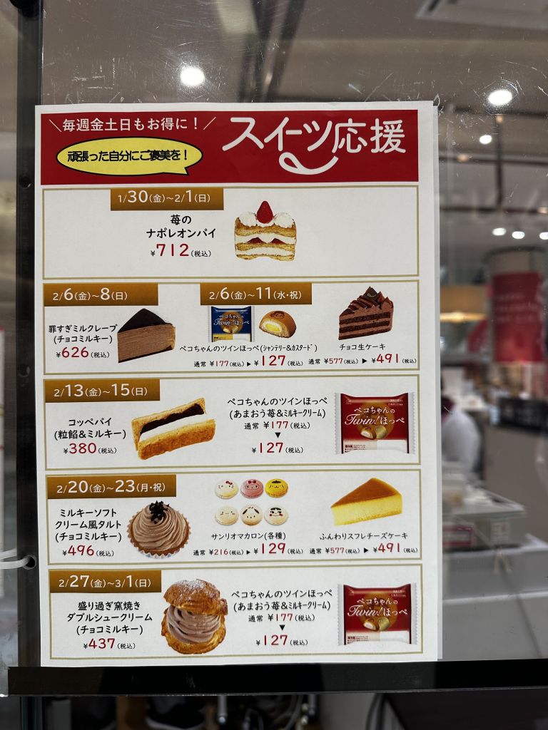 毎週金土日の週末は不二家のスイーツが大変お買い得となっております。