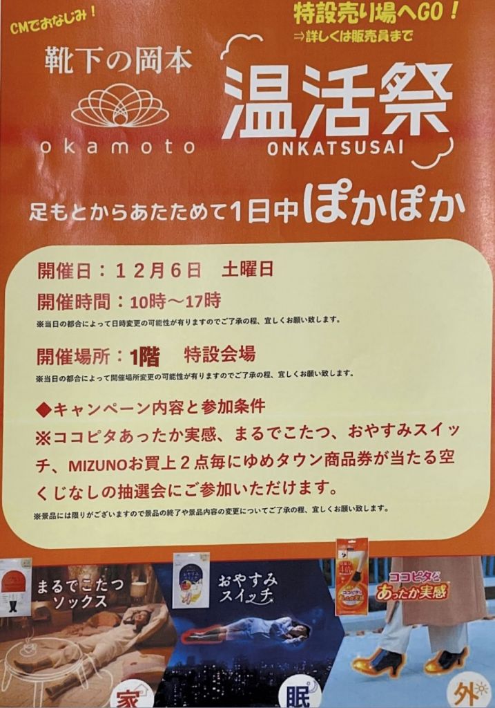 靴下メーカーの岡本によるイベントを開催します!