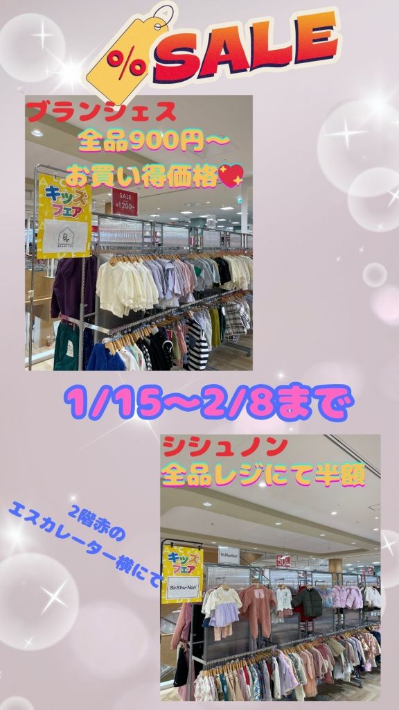 ブランド・子ども服のセールを開催してます!