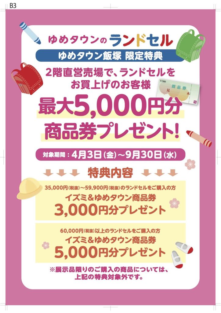 ゆめタウン飯塚でランドセルをご購入の方に…