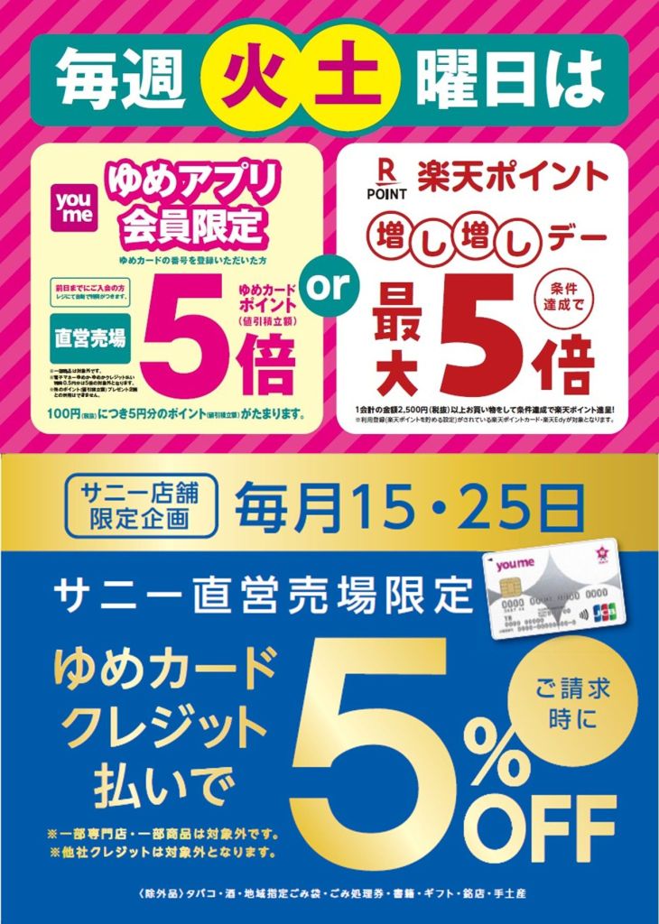 ゆめアプリ5倍or楽天ポイント最大5倍デーです♪