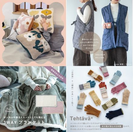 アウター、ニット、帽子、クリスマス雑貨、ブランケット、ルームウェア、ルームシューズ、クッションなどなど…
