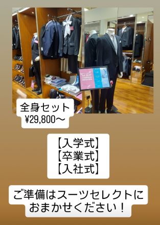 入社式・卒業式・新社会人様のスーツ選びはスーツセレクトにおまかせ♪