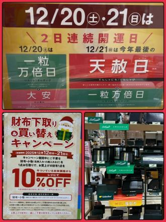 12/18(木)~12/21(日)の期間中、売場内特設コーナーの商品が、当店通常価格より半額〜30%オフのお値下げ価格にてご奉仕しております。