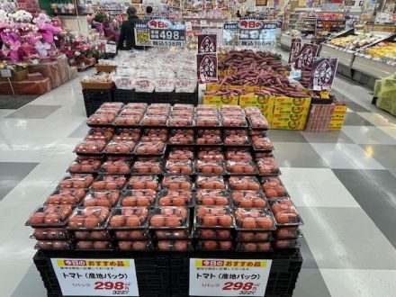 スーパーセンターオークワ桜井店です(^^)/ いつも当店にご来店頂き、誠にありがとうございます。 本日青果コーナーにおきましては、 可愛いくまモンのパッケージが目印でございます、 『産直トマト4〜5玉入り』1パック 298円!! サラダやナムルに如何でしょうか? またオークワマルシェ『なると金時甘姫』98円と こちらもお買い得です。 他にもお買い得商品満載でございます! 皆さまのご来店、心よりお待ちしております。