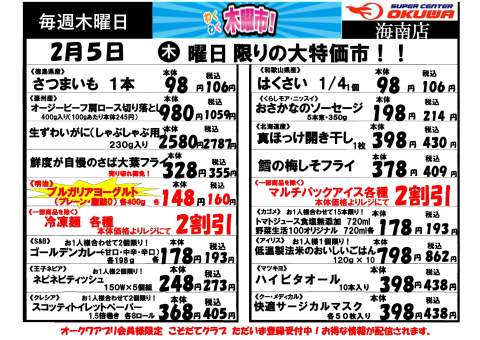 ◇2/5◇わくわく木曜市◇スーパーセンターオークワ海南店