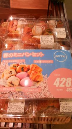 メッサオークワ高松店よりご案内です♪ ベーカリーコーナー 「春のミニパンセット」 1袋 428円(本体) ・黒豆と宇治抹茶のロール ・ミニ塩豆あんぱん ・紅茶のミニクロワッサン ・ミニ桜あんぱん 各2個入りでお勧め商品!!