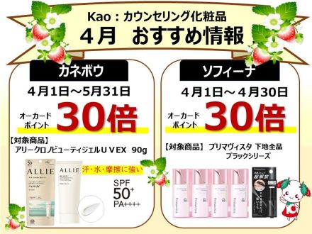 【4月のおすすめ情報】カネボウ&ソフィーナがポイント30倍!_