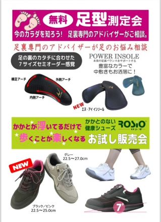 ロシオインソール・ロシオシューズ販売会&無料足型測定会のお知らせです!