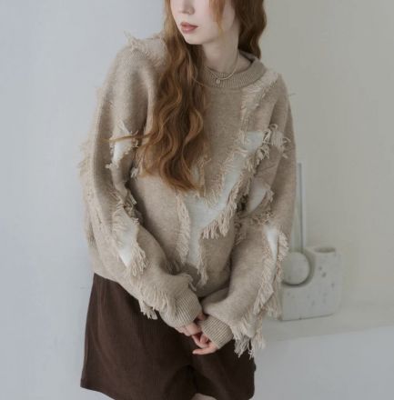 表情豊かなブークレ素材で仕立てた、大人のためのニット。