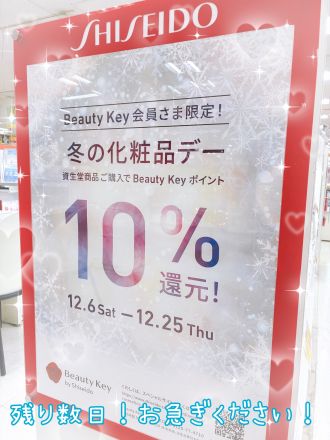 資生堂Beauty Keyポイント10%還元まもなく終了!お急ぎください!