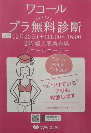 ぜひこの機会に2階ワコールコーナーへお越しくださいませ。