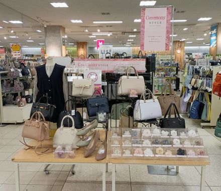 1階服飾雑貨コーナーではセレモニースタイルに最適なバッグや小物を多数品揃えしております。