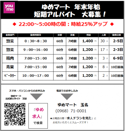 〇年末年始 短期アルバイト募集!ゆめマート玉名